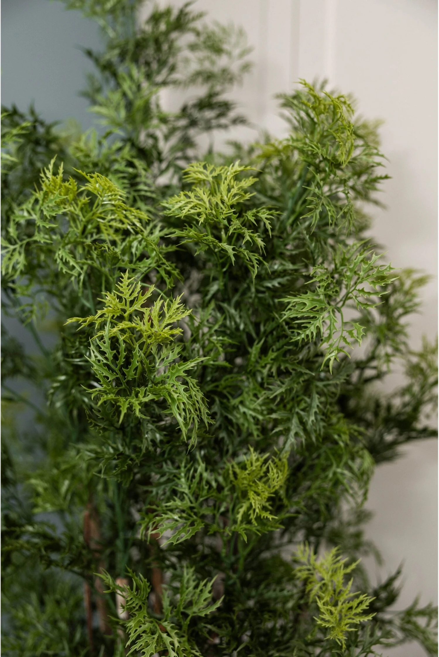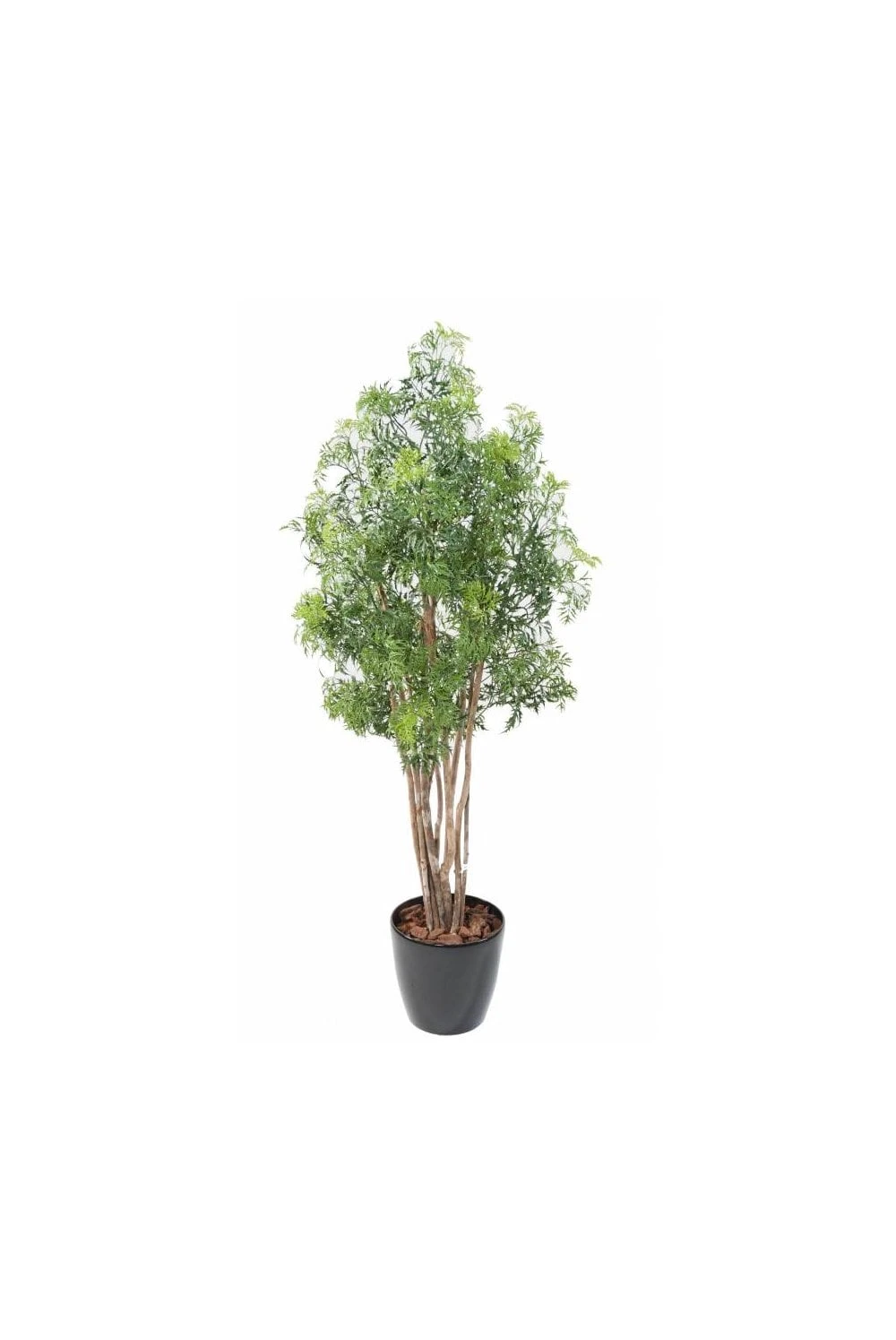 Each Aralia tree features a real timber trunk, adding an authentic touch that beautifully complements its hand-foliated foliage. The foliage is intricately crafted to mimic the delicate appearance of Aralia leaves, ensuring a lifelike and captivating display.