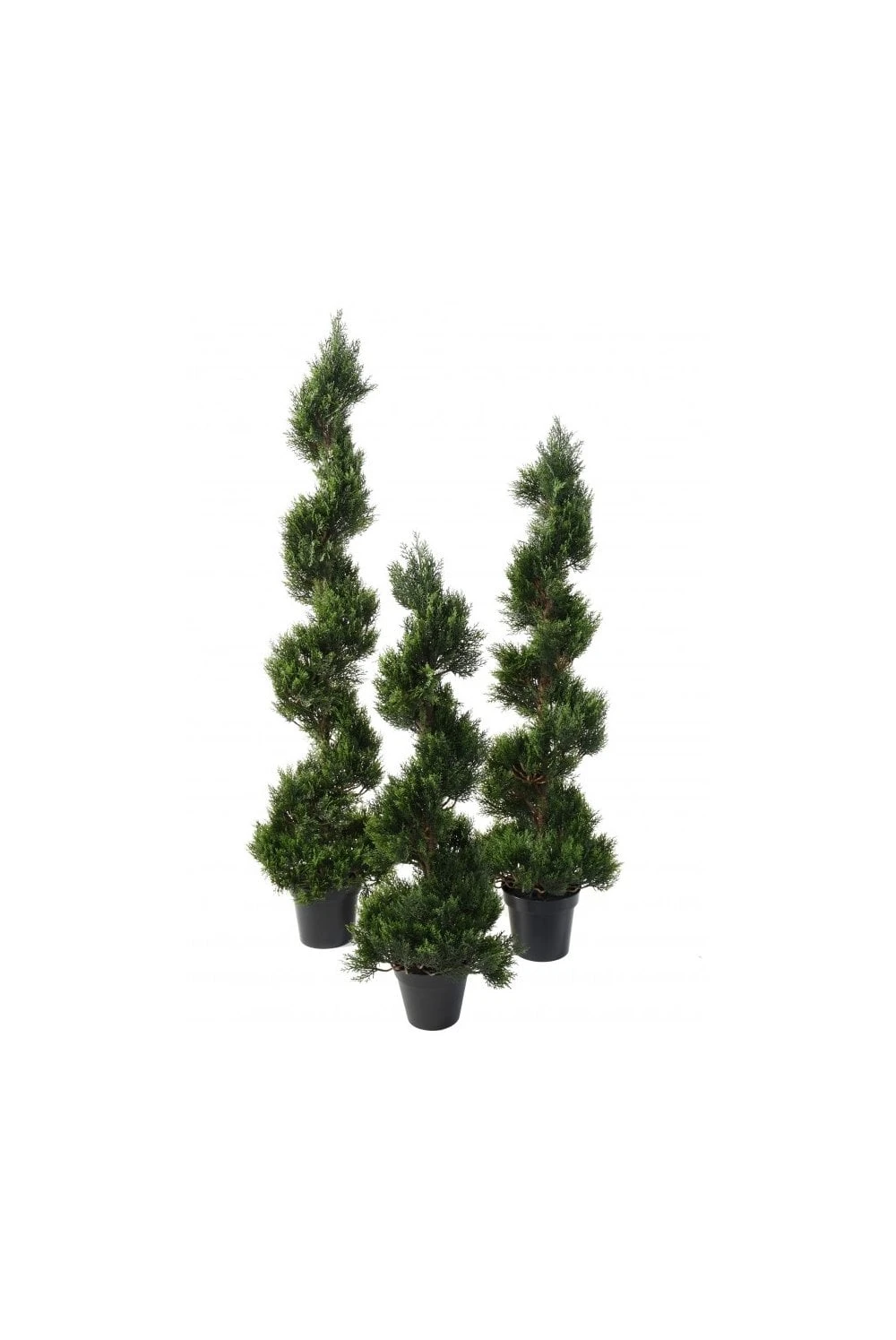 The artificial cedar spiral is also know as a Juniper or a cypress spiral. The tree is very realistic due to the high quality of its foliage.