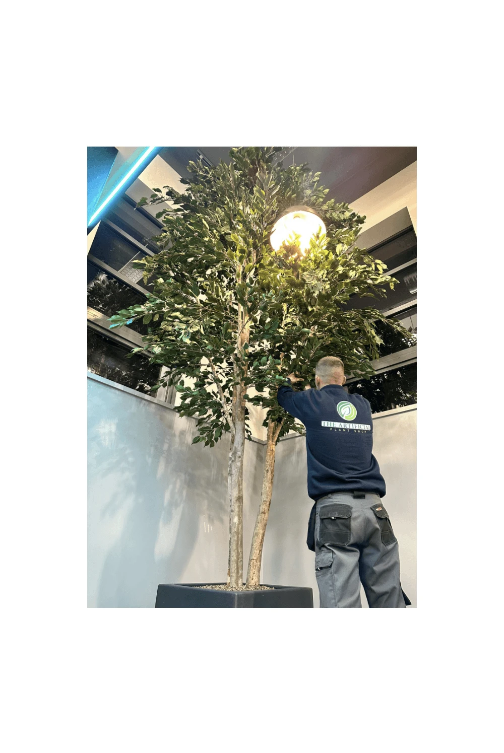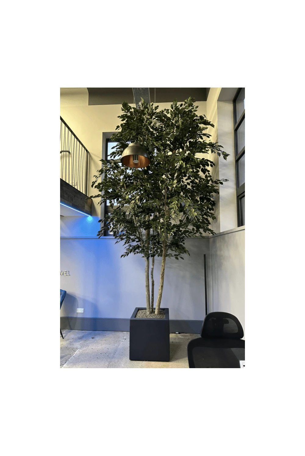 These are our Inherently Fire retardant full size artificial ficus trees in green.