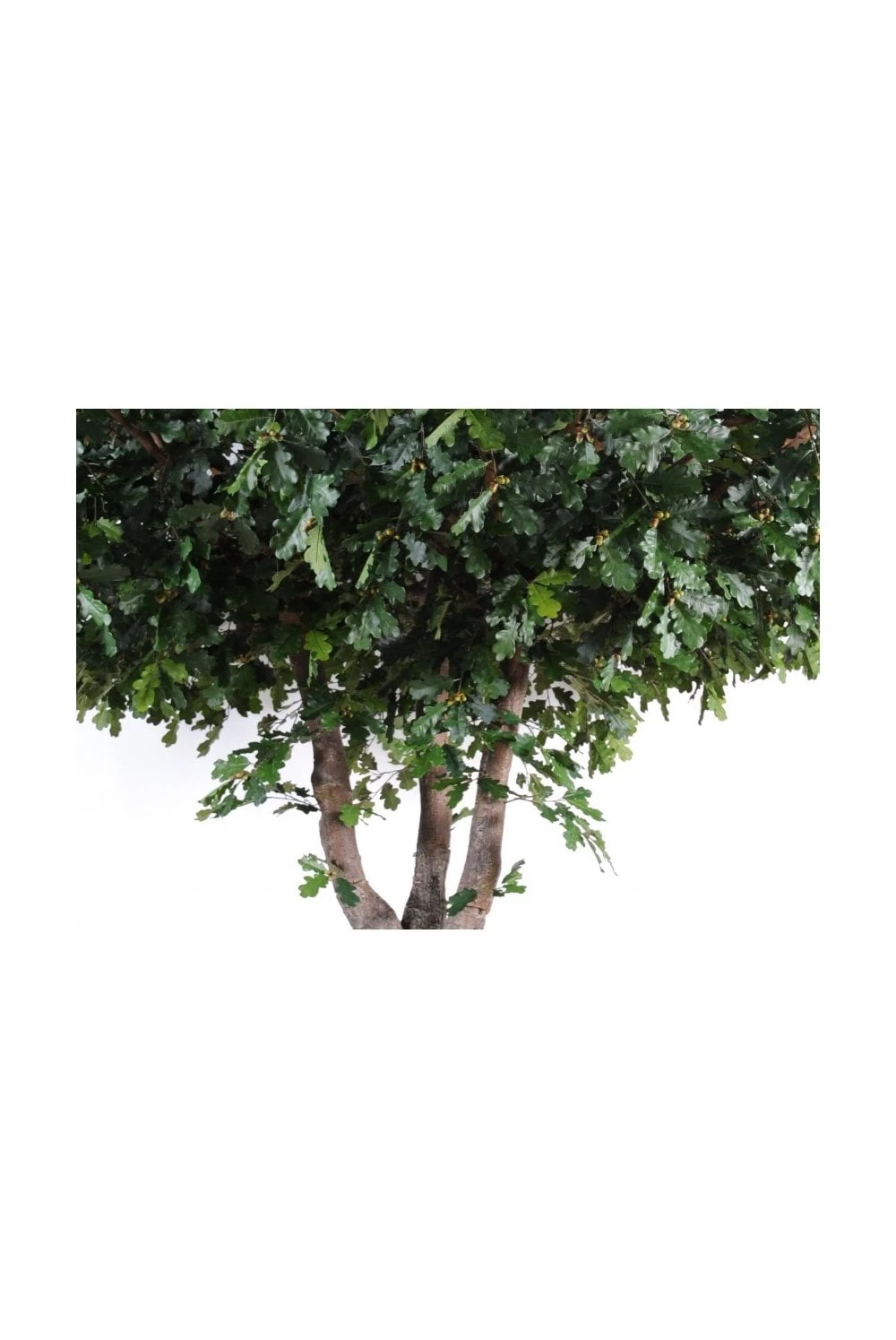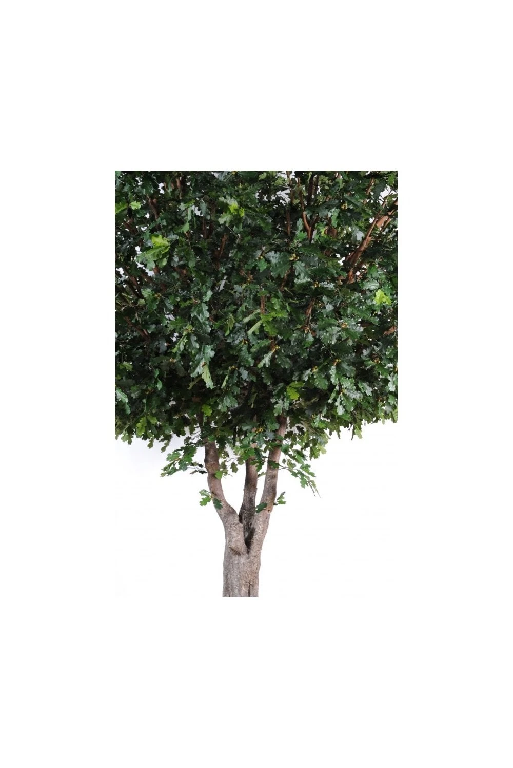 The artificial full size oak tree offers exactly what it says. The fibre glass trunk has a diameter of 300mm and the foliage on the 3.5m starts at 1.5m from the floor.