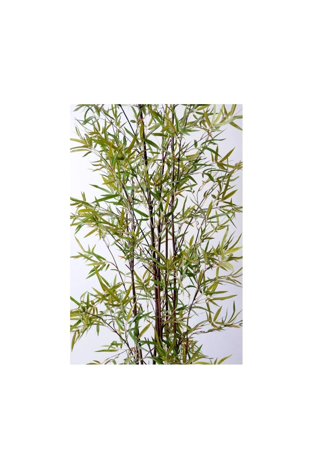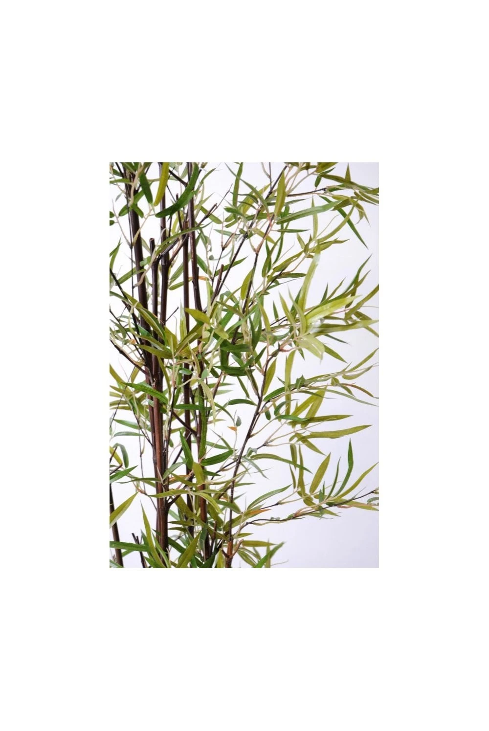 This bamboo tree has a fine artificial foliage, it is not a dense tree, more of a lightly foliated tree. Simple and graceful in appearance.