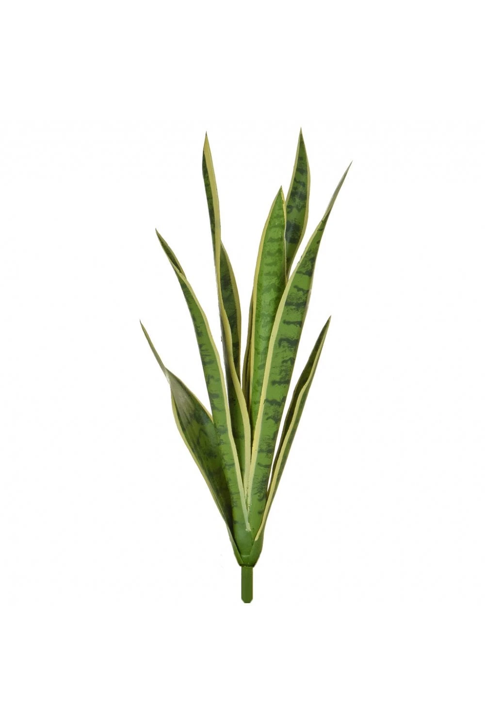 The artificial mother in laws tongue variegated in a great and green artificial plant. Also known as the artificial sansevieria we think the plant looks great in a display . Supplied in two sizes the 107cm and 62cm tall the plant comes with a spike on the base for ease of planting.
