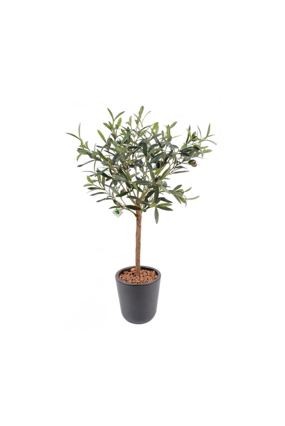 The Artificial Olive Ball Tree is a beautiful small olive tree. It is very realistic and has artificial black olive fruit on the tree.