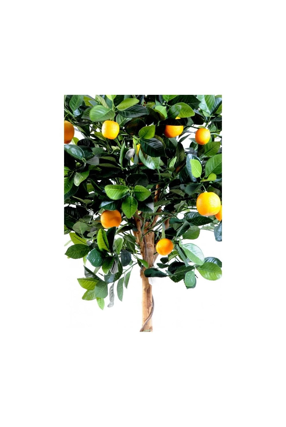 The tree is made on a natural timber stem and has liana wound around the trunk. The tree comes with 22 artificial oranges.