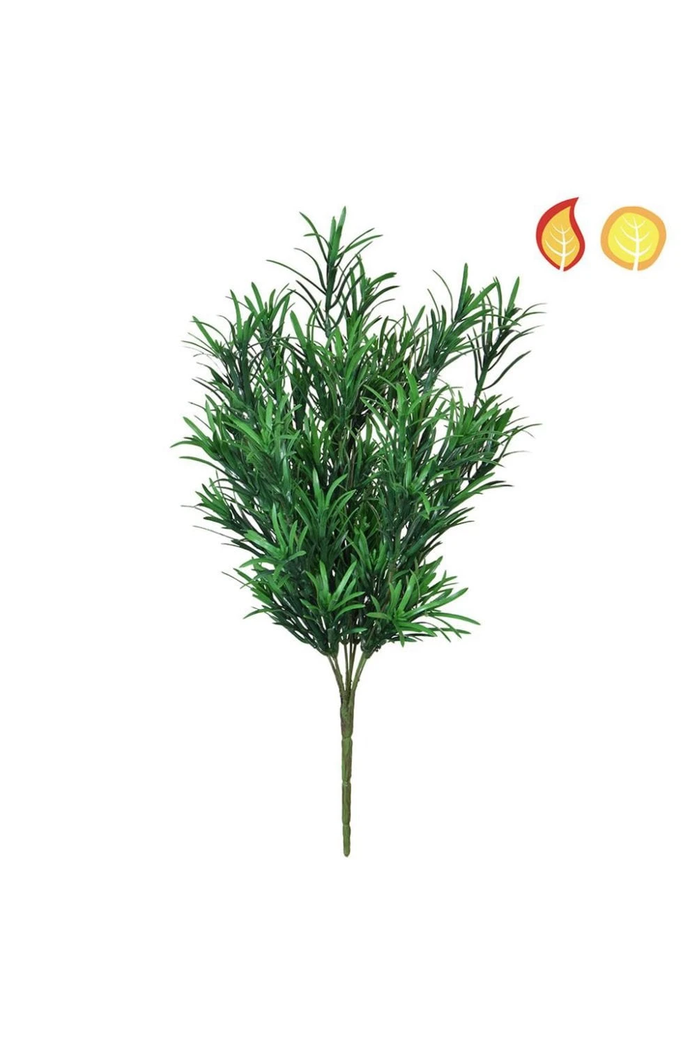 Green Podocarpus Plant. 42cm including stem for planting. Foliage height and width approx. 25cm. This item is UV resistant and inherently flame retardant. Suitable for indoor and outdoor use.