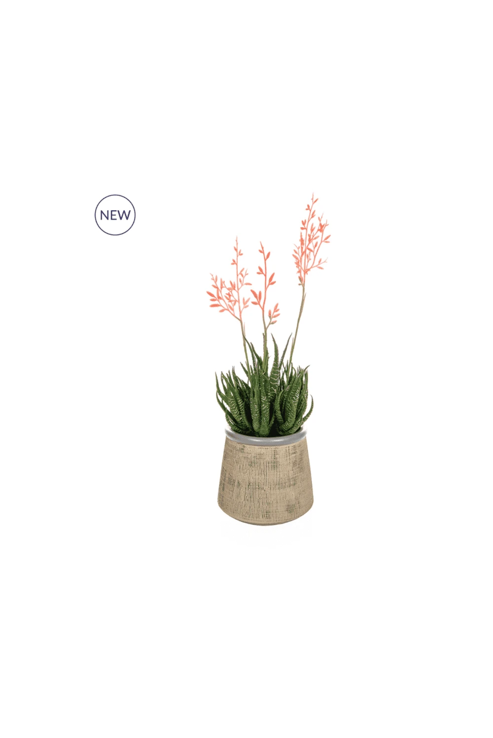 Beautiful Artificial Potted Flowering Aloe that will look fantastic as part of a larger display and will help to bring colour and vibrancy to any space.