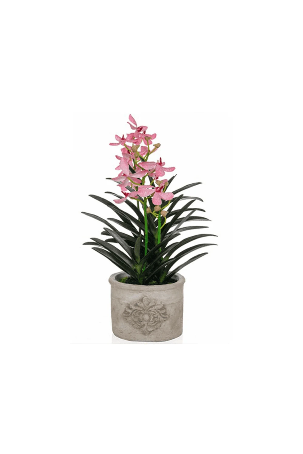 A delightful and very realistic artificial Vanda Orchid Arrangement that will brighten up any space in the home or office.