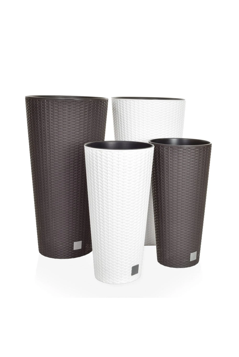These tall tapered rattan effect planters are supplied in 2 sizes and 2 colours.